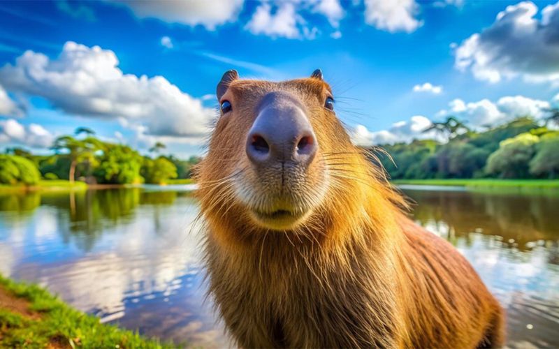 Capybara – loài gặm nhấm lớn nhất hành tinh, còn được nhiều người trìu mến gọi là “chuột lang nước“. Capybara có nguồn gốc từ Nam Mỹ và thường sinh sống ở các khu vực ẩm ướt như đầm lầy, sông ngòi và hồ nước. Với thân hình tròn trĩnh, đôi mắt long lanh như biết nói và tính cách hiền hòa đến bất ngờ, Capybara nhanh chóng chiếm được cảm tình của hàng triệu người trên khắp thế giới.