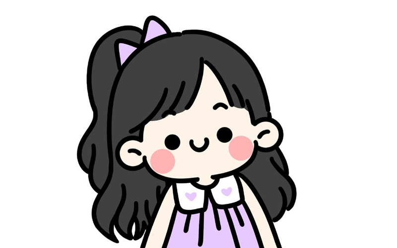 Hình vẽ cute đơn giản thường được thể hiện qua những đường nét tinh tế, mềm mại nhưng không quá chi tiết, tạo cảm giác gần gũi và dễ thương. Đặc trưng của kiểu hình vẽ con gái đáng yêu là khuôn mặt tròn, đôi mắt to long lanh, nụ cười tươi và các yếu tố trang trí nhỏ xinh như chiếc nơ, má hồng hay tóc buộc gọn gàng. Màu sắc thường nhẹ nhàng, tươi sáng, tập trung vào các tông pastel để tăng thêm phần đáng yêu.
